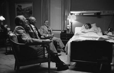 | Keywords: President Ford, Bob Hope and an unidentified man visit Mrs. Ford - NARA - 7140613.jpg President Ford Bob Hope and Hugh Davis visit Mrs Ford at the Bethesda Naval Hospital Bethesda MD during her recovery from breast cancer surgery October 5 1974 7140613 Creator David Hume Kennerly Gerald R Ford Presidential Library http //www fordlibrarymuseum gov/avproj/whitehouse-years-01 asp A1223-20A Institution Gerald R Ford Presidential Library 1974-10-05 Gerald R Ford Presidential Library and Museum-cooperation PD-USGov Uploaded with UploadWizard The White House Years media photo kit at the Gerald R Ford Presidential Library Betty and Gerald Ford Bob Hope Hugh Davis Hospital rooms Breast cancer History of surgery Gerald Ford in 1974 Photographs by David Hume Kennerly from 1974 |