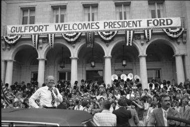 | Keywords: President Ford during a campaign stop - NARA - 7027915.jpg President Gerald Ford greets well-wishers during a campaign stop in Gulfport Mississippi 7027915 Creator Karl Schumacher Gerald R Ford Presidential Library http //www fordlibrarymuseum gov/avproj/campaign asp B1654-07 Institution Gerald R Ford Presidential Library 1976-09-26 Gerald R Ford Presidential Library and Museum-cooperation PD-USGov 1976 Campaign photo kit at the Gerald R Ford Presidential Library 1976 in Mississippi Gerald Ford in 1976 Gulfport Mississippi Gerald Ford presidential campaign 1976 Photographs by Karl Schumacher |
