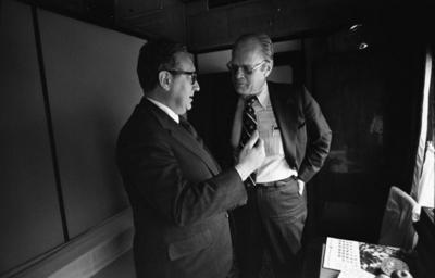 | Keywords: President Ford and Secretary of State Henry Kissinger confer on train - NARA - 7161383.jpg Photograph of President Gerald Ford and Secretary of State Henry Kissinger conferring on the train ride to Vladivostok 7161383 Creator David Hume Kennerly Gerald R Ford Presidential Library http //www fordlibrarymuseum gov/library/exhibits/vladivostok/vdayone asp A2093-03 Institution Gerald R Ford Presidential Library 1974-11-23 Gerald R Ford Presidential Library and Museum-cooperation PD-USGov Uploaded with UploadWizard 1974 State Visit to the USSR photo kit at the Gerald R Ford Presidential Library 1974 in the Soviet Union Rail transport in the Soviet Union Henry Kissinger Gerald Ford in 1974 People in conversation Photographs by David Hume Kennerly from 1974 |