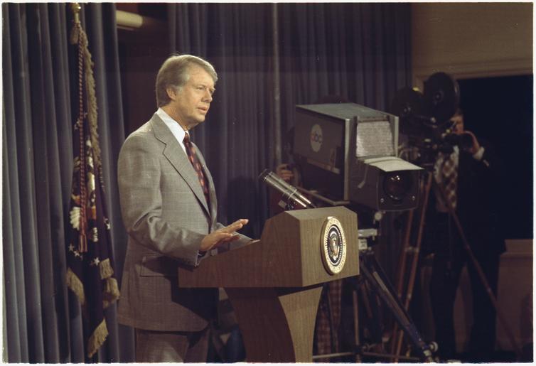 | Keywords: President Jimmy Carter, first press conference - NARA - 173605.tif  Scope and content General notes 173605 Local identifier President 1977-1981 Carter White House Staff Photographers 01/20/1977 - 01/20/1981 Jimmy Carter Library NLJC 441 Freedom Parkway Atlanta GA 30307-1498 1977-02-08 Record group Collection JC-WHSP Carter White House Photographs Collection 01/20/1977 - 01/22/1981 Record group ARC 1120 Carter White House Photographs Presidential compiled 01/20/1977 - 01/22/1981 Series ARC 173341 File unit First Press Conference 02/08/1977 - 02/08/1977 File unit ARC 173604 Variant control numbers NAIL Control Number NLC-WHSP-C-00248-8 yes Other versions NARA-cooperation PD-USGov Press conferences in the White House Jimmy Carter |
