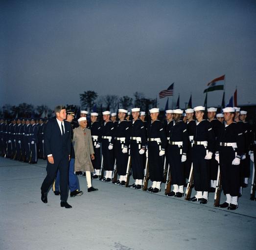 Keywords: President John F. Kennedy and Prime Minister of India Jawaharlal Nehru During Arrival Ceremonies (color).jpg en Arrival ceremonies for Prime Minister of India Jawaharlal Nehru President John F Kennedy escorts Prime Minister Nehru past honor guards from the United States Air Force and Navy Andrews Air Force Base Maryland 1961-11-06 http //www jfklibrary org Abbie Rowe other versions PD-USGov John F Kennedy and Jawaharlal Nehru Jawaharlal Nehru in the United States John F Kennedy in 1961 Jawaharlal Nehru in 1961 Uploaded with UploadWizard Joint Base Andrews Naval Air Facility Honour guards from the United States |