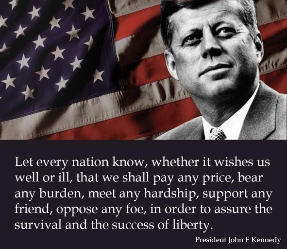 Let every nation know, whether it wishes us well or ill, that we shall pay any price, bear any burden, meet any hardship, support any friend, oppose any foe to assure the survival and the success of liberty.