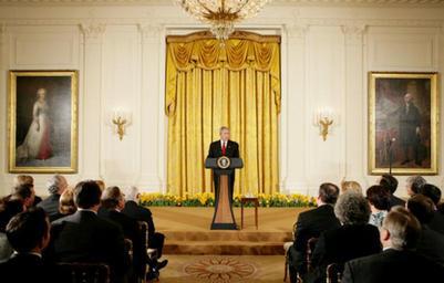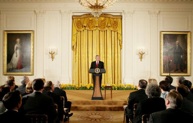 | Keywords: President and Mrs. Bush Commemorate 265th Birthday of Thomas Jefferson.jpg President George W Bush addresses invited guests Monday evening April 14 2008 to the East Room of the White House during a reception in honor of the 265th birthday of former President Thomas Jefferson White House photo by Chris Greenberg http //www whitehouse gov/news/releases/2008/04/images/20080414-6_p041408cg-0065-515h html 2008-04-14 White House photo by Chris Greenberg PD-USGov ImageNote 1 19 88 63 106 514 328 2 thumb ImageNoteEnd 1 ImageNote 2 435 88 68 110 514 328 2 thumb ImageNoteEnd 2 Photographs by Chris Greenberg 20080414 East Room White House George W Bush in 2008 Martha Dandridge Custis Washington Eliphalet Frazer Andrews Lansdowne portrait of George Washington White House |