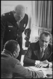 | Keywords: President Nixon conferring with Washington D.C. Mayor Walter Washington, and Police Chief J.W. Wilson - NARA - 194736.tif Scope and content Pictured Walter Washington J W Wilson Richard M Nixon Subject Law Enforcement General notes 194736 Local identifier NLRN-WHPO-7498-09 General Services Administration National Archives and Records Service Office of Presidential Libraries Office of Presidential Papers 01/20/1969 - ca 12/1974 Most Recent <br /> President 1969-1974 Nixon White House Photo Office 1969 - 1974 Most Recent NARA-Author Schumaker Byron E ca 1935- Photographer 8451340 <br /> Richard Nixon Library NLRN 18001 Yorba Linda Boulevard Yorba Linda CA 92886 1971-10-13 Record group Collection RN-WHPO White House Photo Office Collection Nixon Administration 01/20/1969 - 08/09/1974 Record group ARC 1179 Nixon White House Photographs compiled 01/20/1969 - 08/09/1974 documenting the period 08/08/1968 - 08/09/1974 Series ARC 194277 File unit File unit ARC Variant control numbers NAIL Control Number NLNP-WHPO-MPF-7498 09 yes Other versions NARA-cooperation PD-USGov Richard Nixon in 1971 Police officers of the United States Richard Nixon with people Walter Washington |