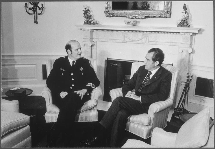 Keywords: President Nixon meeting with D.C. police chief J.W. Wilson in the Oval Office - NARA - 194494.tif Scope and content Pictured J W Wilson Richard M Nixon Subject Law Enforcement General notes 194494 Local identifier NLRN-WHPO-E0380-12A General Services Administration National Archives and Records Service Office of Presidential Libraries Office of Presidential Papers 01/20/1969 - ca 12/1974 Most Recent <br /> President 1969-1974 Nixon White House Photo Office 1969 - 1974 Most Recent NARA-Author Atkins Oliver F 1916-1977 Photographer 8451334 <br /> Richard Nixon Library NLRN 18001 Yorba Linda Boulevard Yorba Linda CA 92886 1973-03-06 Record group Collection RN-WHPO White House Photo Office Collection Nixon Administration 01/20/1969 - 08/09/1974 Record group ARC 1179 Nixon White House Photographs compiled 01/20/1969 - 08/09/1974 documenting the period 08/08/1968 - 08/09/1974 Series ARC 194277 File unit File unit ARC Variant control numbers NAIL Control Number NLNP-WHPO-MPF-E0380 12A yes Other versions NARA-cooperation PD-USGov Photographs by Ollie Atkins |