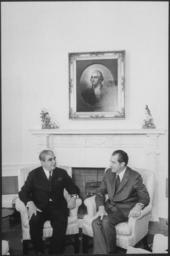 | Keywords: President Nixon meets with President of Pakistan Yahya Khan - NARA - 194693.tif Scope and content Pictured Yahya Khan Richard M Nixon Subject Heads of State - Pakistan General notes 194693 Local identifier NLRN-WHPO-4856-04 General Services Administration National Archives and Records Service Office of Presidential Libraries Office of Presidential Papers 01/20/1969 - ca 12/1974 Most Recent <br /> President 1969-1974 Nixon White House Photo Office 1969 - 1974 Most Recent NARA-Author Atkins Oliver F 1916-1977 Photographer 8451334 <br /> Richard Nixon Library NLRN 18001 Yorba Linda Boulevard Yorba Linda CA 92886 1970-10-25 Record group Collection RN-WHPO White House Photo Office Collection Nixon Administration 01/20/1969 - 08/09/1974 Record group ARC 1179 Nixon White House Photographs compiled 01/20/1969 - 08/09/1974 documenting the period 08/08/1968 - 08/09/1974 Series ARC 194277 File unit File unit ARC Variant control numbers NAIL Control Number NLNP-WHPO-MPF-4856 04 yes Other versions NARA-cooperation PD-USGov Photographs by Ollie Atkins |