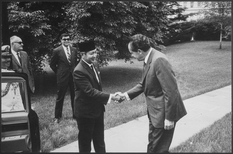 Keywords: President Nixon and Prime Minister Suharto of Indonesia - NARA - 194678.tif Scope and content Pictured Prime Minister Suharto President Nixon Subject Heads of State - S E Asia General notes 194678 Local identifier NLRN-WHPO-3569-02A General Services Administration National Archives and Records Service Office of Presidential Libraries Office of Presidential Papers 01/20/1969 - ca 12/1974 Most Recent <br /> President 1969-1974 Nixon White House Photo Office 1969 - 1974 Most Recent NARA-Author Atkins Oliver F 1916-1977 Photographer 8451334 <br /> Richard Nixon Library NLRN 18001 Yorba Linda Boulevard Yorba Linda CA 92886 1970-05-26 Record group Collection RN-WHPO White House Photo Office Collection Nixon Administration 01/20/1969 - 08/09/1974 Record group ARC 1179 Nixon White House Photographs compiled 01/20/1969 - 08/09/1974 documenting the period 08/08/1968 - 08/09/1974 Series ARC 194277 File unit File unit ARC Variant control numbers NAIL Control Number NLNP-WHPO-MPF-3569 02A yes Other versions NARA-cooperation PD-USGov Photographs by Ollie Atkins |