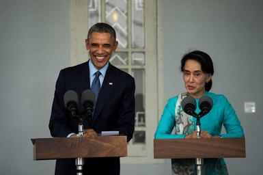 | Keywords: President Obama and Aung San Suu Kyi Address the Media - Flickr - East Asia and Pacific Media Hub (1).jpg RANGOON Burma November 14 2014 President Barack Obama with Chairperson of the National League for Democracy and Member of Parliament Aung San Suu Kyi addresses the international media State Department photo by William Ng/Public Domain https //www flickr com/photos/eapmediahub/15785104331/ President Obama and Aung San Suu Kyi Address the Media 2014-11-14 15 21 https //www flickr com/people/56477391 N06 East Asia and Pacific Media Hub U S Department of State PD-USGov East Asia and Pacific Media Hub https //flickr com/photos/56477391 N06/15785104331 2016-11-27 04 15 07 United States Government Work Uncategorized 2016 November 27 Files_from_East_Asia_and_Pacific_Media_Hub_U S _Department_of_State_Flickr_stream Files_uploaded_by_Josve05a_ U S _DoS |