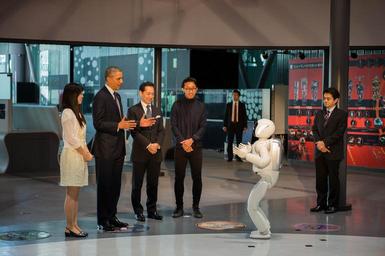 | Keywords: President Obama Watches ASIMO the Humanoid Robot - Flickr - East Asia and Pacific Media Hub (4).jpg TOKYO Japan April 24 2014 U S President Barack Obama with Executive Director Mamoru Mohri of the Miraikan the National Museum of Emerging Science Innovation and Japanese students enjoys the performance of ASIMO the humanoid robot during his visit to the museum State Department photo by William Ng/Public Domain https //www flickr com/photos/eapmediahub/13990399562/ President Obama Watches ASIMO the Humanoid Robot 2014-04-24 15 13 https //www flickr com/people/56477391 N06 East Asia and Pacific Media Hub U S Department of State PD-USGov East Asia and Pacific Media Hub https //flickr com/photos/56477391 N06/13990399562 2016-12-16 18 12 23 United States Government Work Uncategorized 2016 December 16 Files_from_East_Asia_and_Pacific_Media_Hub_U S _Department_of_State_Flickr_streamFiles_uploaded_by_Josve05a_ U S _DoS |