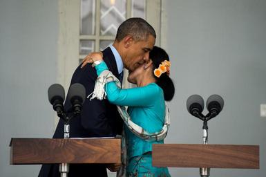 | Keywords: President Obama with Aung San Suu Kyi - Flickr - East Asia and Pacific Media Hub (1).jpg RANGOON Burma November 14 2014 President Barack Obama greets Chairperson of the National League for Democracy and Member of Parliament Aung San Suu Kyi State Department photo by William Ng/Public Domain https //www flickr com/photos/eapmediahub/15601567978/ President Obama with Aung San Suu Kyi 2014-11-14 15 16 https //www flickr com/people/56477391 N06 East Asia and Pacific Media Hub U S Department of State PD-USGov East Asia and Pacific Media Hub https //flickr com/photos/56477391 N06/15601567978 2016-11-27 04 14 17 United States Government Work Uncategorized 2016 November 27 Files_from_East_Asia_and_Pacific_Media_Hub_U S _Department_of_State_Flickr_stream Files_uploaded_by_Josve05a_ U S _DoS |