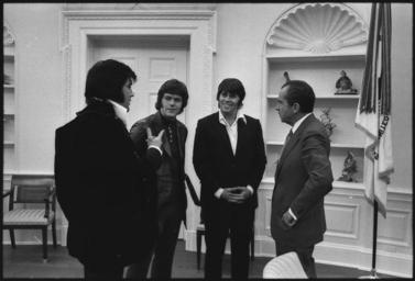 | Keywords: President Richard M. Nixon Meeting Elvis Presley And Two of His Associates Jerry Schilling And Sonny West - NARA - 194704.tif Scope and content Pictured Richard M Nixon Jerry Schilling Sonny West Elvis Presley General notes 194704 Local identifier NLRN-WHPO-5369-15A General Services Administration National Archives and Records Service Office of Presidential Libraries Office of Presidential Papers 01/20/1969 - ca 12/1974 Most Recent <br /> President 1969-1974 Nixon White House Photo Office 1969 - 1974 Most Recent NARA-Author Atkins Oliver F 1916-1977 Photographer 8451334 <br /> Richard Nixon Library NLRN 18001 Yorba Linda Boulevard Yorba Linda CA 92886 1970-12-21 Record group Collection RN-WHPO White House Photo Office Collection Nixon Administration 01/20/1969 - 08/09/1974 Record group ARC 1179 Nixon White House Photographs compiled 01/20/1969 - 08/09/1974 documenting the period 08/08/1968 - 08/09/1974 Series ARC 194277 File unit File unit ARC Variant control numbers NAIL Control Number NLNP-WHPO-MPF-5369 15A yes Other versions NARA-cooperation PD-USGov Elvis Presley and Richard Nixon at the White House 1970 |