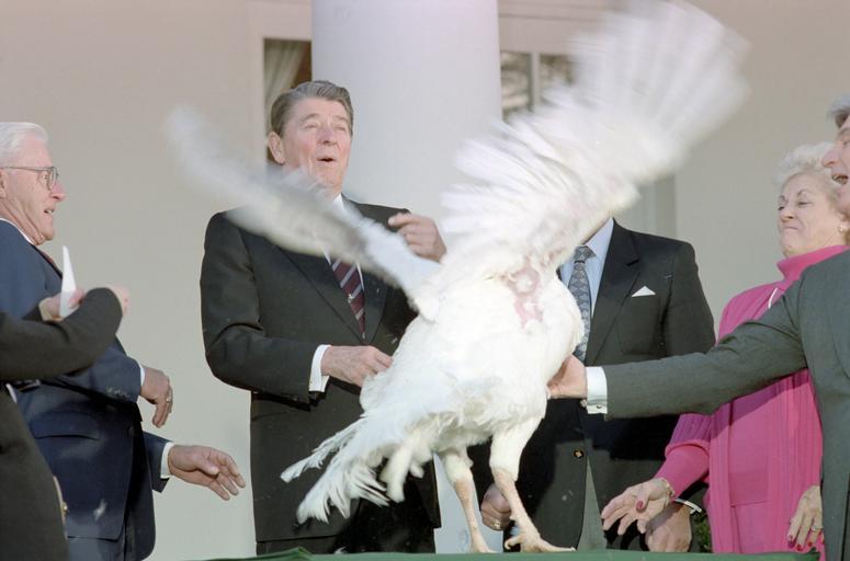 | Keywords: holiday nara:arcid=6919300 u.s. national archives usnationalarchives thanksgiving people indoor Original Caption: White House Ceremony to Receive the 40th Thanksgiving Turkey, 11/23/1987 U.S. National Archives’ Local Identifier: C43795-20 From: Series : Reagan White House Photographs, compiled 01/20/1981 - 01/20/1989, documenting the period 1915 - 01/20/1989 Collection RR-WHPO: White House Photographic Collection, 01/20/1981 - 01/20/1989 Created By: President (1981-1989 : Reagan). White House Photographic Office. (1981 - 1989) (Most Recent) Production Date: 11/23/1987 Persistent URL: research.archives.gov/description/6919300 Repository: Ronald Reagan Library (LP-RR), 40 Presidential Drive, Simi Valley, CA 93065-0600, Phone: 800-410-8354, Fax: 805-577-4074, Email: reagan.library@nara.gov Access Restrictions: Unrestricted Use Restrictions: Unrestricted Original Caption: White House Ceremony to Receive the 40th Thanksgiving Turkey, 11/23/1987 U.S. National Archives’ Local Identifier: C43795-20 From: Series : Reagan White House Photographs, compiled 01/20/1981 - 01/20/1989, documenting the period 1915 - 01/20/1989 Collection RR-WHPO: White House Photographic Collection, 01/20/1981 - 01/20/1989 Created By: President (1981-1989 : Reagan). White House Photographic Office. (1981 - 1989) (Most Recent) Production Date: 11/23/1987 Persistent URL: research.archives.gov/description/6919300 Repository: Ronald Reagan Library (LP-RR), 40 Presidential Drive, Simi Valley, CA 93065-0600, Phone: 800-410-8354, Fax: 805-577-4074, Email: reagan.library@nara.gov Access Restrictions: Unrestricted Use Restrictions: Unrestricted Original Caption: White House Ceremony to Receive the 40th Thanksgiving Turkey, 11/23/1987