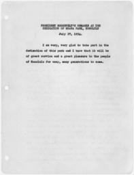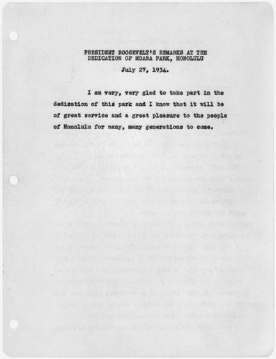 | Keywords: President Roosevelt's remarks at the dedication of Moana Park, Honolulu - NARA - 197463.tif Scope and content General notes 197463 Local identifier President 1933-1945 Roosevelt 1933 - 1945 NARA-Author Roosevelt Franklin D Franklin Delano 1882-1945 Author 1301590 <br /> Honolulu Oahu Honolulu county Hawaii United States North and Central America inhabited place 4201560 21 3 -157 85 <br /> Franklin D Roosevelt Library NLFDR 4079 Albany Post Road Hyde Park NY 12538-1999 1934-07-27 Record group Collection FDR-PPF Papers as President President's Personal File 1933 - 1945 Record group ARC 1185 Speeches of President Franklin D Roosevelt compiled 1933 - 1945 Series ARC 197300 File unit First Carbon Files 1933 - 1945 File unit ARC 197301 Variant control numbers NAIL Control Number NLR-PPF-1820-1STCARBON-SA21 yes Other versions <gallery> File President_Roosevelt's_remarks_at_the_dedication_of_Moana_Park _Honolulu_-_NARA_-_197463 tif tif File President_Roosevelt's_remarks_at_the_dedication_of_Moana_Park _Honolulu_-_NARA_-_197463 jpg jpg </gallery> NARA-cooperation PD-USGov NARA TIF images with categorized JPGs |