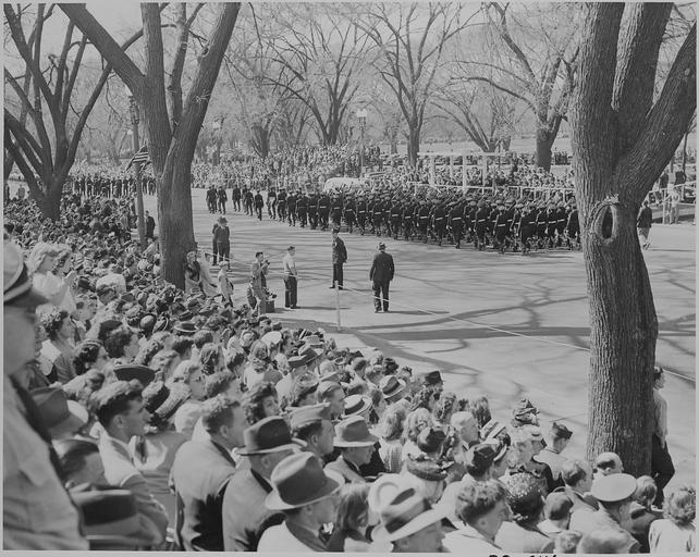 | Keywords: President Truman attends the Army Day parade in Washington, D. C. This is a distance view of the parade. - NARA - 199616.tif Scope and content General notes 199616 Local identifier National Archives and Records Administration Office of Presidential Libraries Harry S Truman Library 04/01/1985 - NARA-Author Rowe Abbie 1905-1967 Photographer 8451352 <br /> Harry S Truman Library NLHST 500 West U S Highway 24 Independence MO 64050-1798 1947-04-07 Record group Collection HST-AVC Audiovisual Collection 1957 - 2006 Record group ARC 1207 Photographs Relating to the Administration Family and Personal Life of Harry S Truman compiled 1957 - 2004 documenting the period 1849 - 2004 Series ARC 198606 File unit File unit ARC Variant control numbers NAIL Control Number NLT-AVC-PHT-73 2461 yes Other versions <gallery> File President_Truman_attends_the_Army_Day_parade_in_Washington _D _C _This_is_a_distance_view_of_the_parade _-_NARA_-_199616 tif tif File President_Truman_attends_the_Army_Day_parade_in_Washington _D _C _This_is_a_distance_view_of_the_parade _-_NARA_-_199616 jpg jpg </gallery> NARA-cooperation PD-USGov Photographs by Abbie Rowe Black and white photographs NARA TIF images with categorized JPGs |