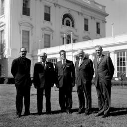 | Keywords: u.s. national archives usnationalarchives jfk presidential library jfkpresidentiallibrary blackandwhite monochrome outdoor black and white Original Caption: Presidential Assistant John J. McNally with Visitors from Worcester, Massachusetts We are looking for your help in identifying unknown people in our White House Photographs collection. If you have any information about this photograph, please post a comment, including any relevant sources, for the catalogers at the John F. Kennedy Presidential Library. Thank you! Local Identifier: JFKWHP-KN-19030-A Created By: President (1961-1963 : Kennedy). Office of the Naval Aide to the President.(1961 - 1963) From: Collection JFK-WHP: White House Photographs, 12/19/1960 - 03/11/1964 Contact: John F. Kennedy Library (LP-JFK), Columbia Point Boston, MA 02125-3398 Phone: 617-514-1600 Fax: 617-514-1652 Email: kennedy.library@nara.gov Production Dates: 10/4/1961 Scope and Content Note: In this photograph Presidential Assistant John J. McNally meets with visitors from Worcester, Massachusetts. Mr. McNally (center); others unidentified. South Lawn, White House, Washington, D.C. Persistent URL: JFK Library URL: www.jfklibrary.org/Asset-Viewer/Archives/JFKWHP-KN-19030-... Access Restrictions: Unrestricted Use Restrictions: Unrestricted Original Caption: Presidential Assistant John J. McNally with Visitors from Worcester, Massachusetts We are looking for your help in identifying unknown people in our White House Photographs collection. If you have any information about this photograph, please post a comment, including any relevant sources, for the catalogers at the John F. Kennedy Presidential Library. Thank you! Local Identifier: JFKWHP-KN-19030-A Created By: President (1961-1963 : Kennedy). Office of the Naval Aide to the President.(1961 - 1963) From: Collection JFK-WHP: White House Photographs, 12/19/1960 - 03/11/1964 Contact: John F. Kennedy Library (LP-JFK), Columbia Point Boston, MA 02125-3398 Phone: 617-514-1600 Fax: 617-514-1652 Email: kennedy.library@nara.gov Production Dates: 10/4/1961 Scope and Content Note: In this photograph Presidential Assistant John J. McNally meets with visitors from Worcester, Massachusetts. Mr. McNally (center); others unidentified. South Lawn, White House, Washington, D.C. Persistent URL: JFK Library URL: www.jfklibrary.org/Asset-Viewer/Archives/JFKWHP-KN-19030-... Access Restrictions: Unrestricted Use Restrictions: Unrestricted |