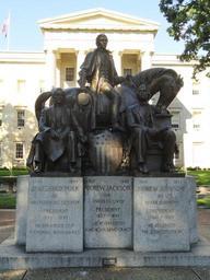 Keywords: Presidents North Carolina Gave the Nation - DSC05847.JPG Presidents North Carolina Gave the Nation memorial by sculptor Charles Keck This work honors the three presidents born in North Carolina Andrew Jackson of Union County seventh president of the United States 1829-1837 ; James Knox Polk of Mecklenberg County eleventh president of the United States 1845-1849 ; and Andrew Johnson of Wake County seventeenth president of the United States 1865-1869 Memorial located on the grounds of the North Carolina State Capitol Raleigh North Carolina USA I took this photograph 2011-10-05 10 06 22 Daderot Public domain PD-US-no notice Presidents North Carolina Gave the Nation
