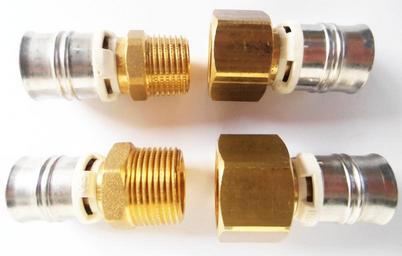 Keywords: Pressfittings 4.jpg en Press fittings adapter 20 mm to ½ and to ¾ male and female 2013-08-18 Own Sarang Press fittings
