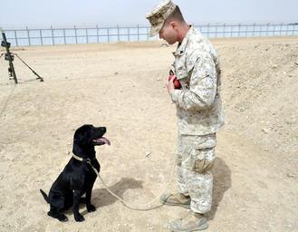 | Keywords: Preventing the boom, Coalition forces IED train 120324-N-LS301-234.jpg en Crash an improvised explosive device detection dog waits for his reward after finding an improvised explosive device Crash works with his dog handler Cpl David Norris a native of Vacaville Calif an instructor of Reception Staging Onward movement and Integration course at Camp Leatherneck Afghanistan The two of them work on training exercises and physical exercise daily 2012-03-24 Petty Officer 3rd Class Monique LaRouche https //www dvidshub net/image/549168 120324-N-LS301-234 2012-03-27 09 16 CAMP LEATHERNECK AF PD-USGov-Military-Navy Camp Leatherneck Images from DoD uploaded by Fæ |