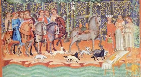 | Keywords: Pribeh OB.jpg cs Oldřich a Božena http //upload wikimedia org/wikipedia/commons/9/9f/Dalimil-Oldrich jpg Dalimilova kronika anonymous century 14 PD-Art Chronik Dalimil Božena Křesinova Oldřich Duke of Bohemia in miniature Medieval miniatures of dogs Medieval miniatures of horses Squirrel clothing in art |