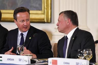 MAKE A MEME View Large Image Prime Minister of the United Kingdom David Cameron, left, chats with King Abdullah II of Jordan at the Nuclear Security Summit dinner hosted by President Barack Obama at the White House in Washington, D.C. on March 31, 2016. [Ben Solomon/...