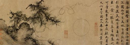 | Keywords: Primordial Chaos by Zhu Derun.jpg en Primordial Chaos 渾淪 drawn by Zhu Derun in AD 1349 Yuan Dynasty Ink on paper Height 29 7 cm; width 86 2 cm Shanghai Museum 徳潤 渾淪図巻 元・至正9年(1349) 紙 墨画 29 7 x 86 2 cm 上海博物館 fr Zhu Derun 1294-1365 L'Origine primordiale ou Chaos primordial 1349 Rouleau horizontal encre sur papier 29 7 x 86 2 cm Musée de Shanghai Chinese Wikipedia Article 德润 1294 - 1365 Creator Zhu Derun 1349 AD PD-old-100 Zhu Derun PD China Paintings of the Yuan Dynasty Paintings in the Shanghai Museum |