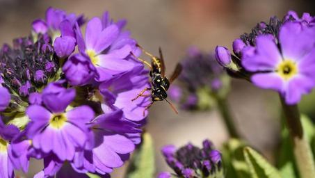 Keywords: primrose drumstick flower purple spring flower early bloomer garden nature field wasp insect animal close