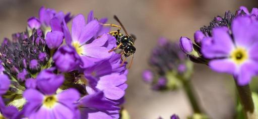 Keywords: primrose flower spring flower early bloomer purple field wasp insect wasp animal nature macro