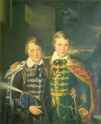 | Keywords: Princes Ferdinand (1816-85) and Augustus (1818-81) of Saxe-Coburg and Gotha when children (c.1824).png en Princes Ferdinand 1816-85 and Augustus 1818-81 of Saxe-Coburg and Gotha when children pt Os Príncipes Fernando 1816-85 e Augusto 1818-81 de Saxe-Cogurgo e Gotha enquanto crianças 1824 Oil on canvas cm 44 36 8 Institution Royal Collection Osborne House Prince Consort's Dressing Room Writing Room Royal Collection http //www royalcollection org uk/collection/403689/princes-ferdinand-1816-85-and-augustus-1818-81-of-saxe-coburg-and-gotha-when RCIN 403689 other versions PD-old-100 Osborne House z 19th-century portrait paintings in the Royal Collection of the United Kingdom 1824c Ferdinand II of Portugal 1824c August von Sachsen-Coburg und Gotha 1824c 1824 oil on canvas paintings in the United Kingdom Portrait 1824 portrait paintings Male 19th-century family portraits of royalty 1824c 19th-century oil portraits of boys at three-quarter length 1824c Uploaded with UploadWizard |