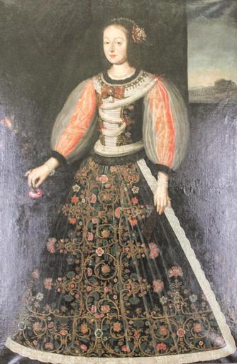 Keywords: Princess Anna Julianna Esterházy, wife of Count Ferenc Nádasdy.jpg Artwork Creator Benjamin Block 1656 oil on canvas Institution Hungarian National Museum Budapest Budapest object history From the ancestral gallery of the Nádasdy family credit line accession number own ; Photo by Szilas in the Hungarian National Museum Commonist PD-old-100 Paintings in the Hungarian National Museum Nádasdy family House of Esterházy Benjamin von Block 1656 portrait paintings 1656 oil on canvas paintings 17th-century oil portraits of standing women at full length Portrait paintings of women holding flowers