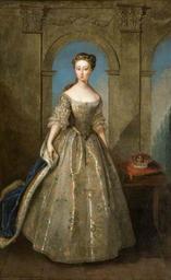 | Keywords: Princess Caroline of Great Britain.jpg Princess Caroline of Great Britain 1713-1757 <br> c Hertford Town Council; Supplied by The Public Catalogue Foundation 1728 Oil on canvas cm 239 145 Hertford Magistrates' Court - Hertfordshire accession number SHP 2 own DeclevaFernandes http //artuk org/discover/artworks/princess-amelia-sophia-17111786-16386 other versions PD-art-old-100 cc-by-sa-4 0 The Family of George II Mercier series Princess Caroline of Great Britain 1728 18th-century fur fashion 18th-century oil portraits of standing women at full length in ceremonial mantles 1728 Ermine clothing in art Portrait paintings of women with crowns on cushions 1728 |