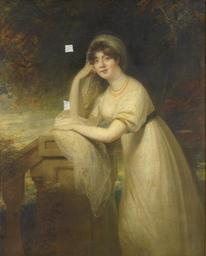 | Keywords: Princess Sophia Matilda of Gloucester - Beechey 1803-5.jpg Artwork Creator Henry William Beechey This portrait must date from c 1800 when the sitter was 23 It is executed in a formula devised by Reynolds and Romney in the 1770s to express a young lady ™s simplicity and sensibility The white dress veil and strings of pearls are simple and unaffected; the tender posture dreamy smile flushed cheeks and natural setting convey the sitter ™s fine feelings between 1803 1805 oil on canvas cm 143 114 4 Institution Royal Collection of the United Kingdom <small>See source section </small> object history The sitter was George III ™s niece whose brother William Frederick Duke of Gloucester 1776-1834 married George III ™s daughter Mary which may be the reason why this and other Gloucester portraits came into the Royal Collection exhibition history It has rested in the Royal Collection since its original painting date credit line Her Majesty Queen Elizabeth II accession number RCIN 406663 http //www royalcollection org uk/collection/406663 Royal Collection org uk PD-old-100 Uploaded with UploadWizard Princess Sophia Matilda of Gloucester 19th-century portraits of women Henry William Beechey |