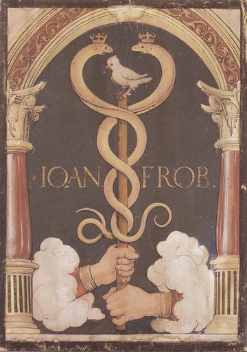 | Keywords: Printer's Device of Johannes Froben.jpg Johann Latin Johannes Froben c 1460 “1527 was a noted printer in Basel for whom Holbein worked and whose portrait he painted Holbein probably painted the device to hang in Froben's printing shop; and it has survived because Froben's grandson gave it to the Holbein collector Basilius Amerbach in 1583 According to art historian John Rowlands The advice of St Matthew 10 16 is symbolized by the pagan image of Mercury's staff the symbol of concord on which a dove is perched between two serpents Behold I send you forth as sheep in the midst of wolves be ye therefore wise as serpents and harmless as doves <ref>John Rowlands Holbein The Paintings of Hans Holbein the Younger Boston David R Godine 1985 ISBN 0879235780 p 128 </ref> Mercury is traditionally regarded as the god of commerce and trade Holbein did not invent the device which Froben had used in his publications from 1517 <br> <br/>References <references/> Christian Müller; Stephan Kemperdick; Maryan Ainsworth; et al Hans Holbein the Younger The Basel Years 1515 “1532 Munich Prestel 2006 ISBN 9783791335803 p 295 Creator Hans Holbein d J c 1523 PD-old-100 Printers publishers Johannes Froben Paintings by Hans Holbein der Jüngere Printer's marks Tempera on canvas Basilius Amerbach |