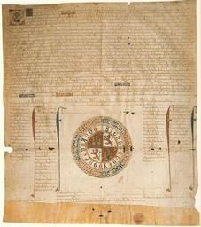| Keywords: Privilegio rodado de Fernando IV de Castilla confirmando los privilegios que Alfonso X y Sancho IV concedieron al monasterio de San Clemente de Sevilla (13-4-1304).jpg Privilegio rodado emitido por el rey Fernando IV de Castilla el día 13 de abril de 1304 por el que confirma los privilegios que su abuelo Alfonso X de Castilla y su padre Sancho IV de Castilla concedieron al monasterio de San Clemente de Sevilla y especialmente el que concedía a la comunidad de religiosas de San Clemente exenciones en el pago del diezmo y del almojarifazgo El documento se custodia en el monasterio de San Clemente de Sevilla provincia de Sevilla España 1304 cite book VV AA Real Monasterio de San Clemente Historia Tradición y Liturgia 1999 Obra Social y Cultural Cajasur 84-7959-274-5 source PD-old-100 Uploaded with UploadWizard Privilegios rodados de Fernando IV de Castilla Archivo del monasterio de San Clemente de Sevilla 1304 Andalusia in the 14th century |