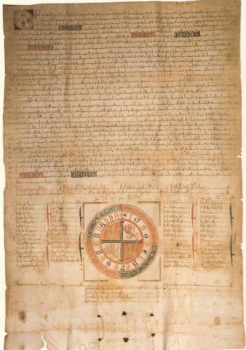 | Keywords: Privilegio rodado de Fernando IV de Castilla confirmando los privilegios que Alfonso X y Sancho IV concedieron al monasterio de San Clemente de Sevilla (13-8-1310).jpg Privilegio rodado emitido por el rey Fernando IV de Castilla el día 13 de agosto de 1310 por el que confirma los privilegios que su abuelo Alfonso X de Castilla y su padre Sancho IV de Castilla concedieron al monasterio de San Clemente de Sevilla Al mismo tiempo Fernando IV concedió a dicho monasterio nuevas exenciones y franquezas El documento se custodia en el monasterio de San Clemente de Sevilla provincia de Sevilla España 1310 cite book VV AA Real Monasterio de San Clemente Historia Tradición y Liturgia 1999 Obra Social y Cultural Cajasur 84-7959-274-5 source PD-old-100 Uploaded with UploadWizard Privilegios rodados de Fernando IV de Castilla Archivo del monasterio de San Clemente de Sevilla Andalusia in the 14th century 1310 |