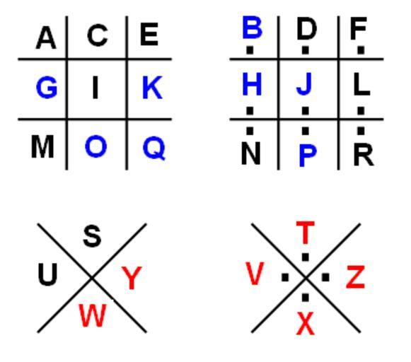 Keywords: Probable-cle-musee-FM.png Grille-probable-code-fm-musee svg fr Clé probable du code « parc à cochon » du Musée de la Franc-maçonnerie own Olivier Hammam Cc-zero Pigpen cipher