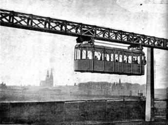 | Keywords: Probestrecke-Langen-System1-in-Deutz-189x.jpg en Test track of en Eugen Langen's suspended en Suspension railway in Cologne built in the early 1890ies with the system later becoming known as the SAFEGE-system de Probestrecke von de Eugen Langen's de Hängebahn auf dem Gelände der Waggonfabrik van der Zypen Charlier in Köln-Deutz in den frühen 1890er Jahren gebaut nach der 1 Grundform von Langen's Entwürfen wie sie später als System SAFEGE oder H-Bahn bekannt wurden Stahl und Eisen Zeitschrift für das deutsche Eisenhüttenwesen Vol 14 1894 No 6 page 246 Gaillard 1894 Langen monorail first design PD-old |