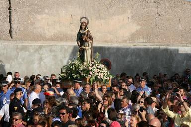 | Keywords: roquetas de mar roquetasdemar fiestas roquetas de mar fiestasroquetasdemar fiestas santa ana roquetas de mar fiestassantaanaroquetasdemar fiestas el puerto roquetas de mar fiestaselpuertoroquetasdemar procesión santa ana procesiónsantaana people crowd El 26 de julio volvió a ser un día grande para El Puerto de Roquetas de Mar. La procesión en honor a la Virgen del Carmen y Santa Ana reunió a miles de personas que arroparon a las imágenes en el recorrido por las calles del barrio. Los vecinos y visitantes vivieron la procesión con intensidad y exaltación, y los vítores a la Virgen y Santa Ana fueron constantes. Por la mañana se celebraba la Santa Misa solemne en el tercer y último día del Triduo. Por la tarde, pasadas las 18 horas, comenzaba la procesión. Las imágenes estuvieron acompañadas por la música de la Banda de Música de Loja y de la Unión Musical Roquetas de Mar. Desde la Parroquia de Santa Ana se llegaba a la Calle El Faro y después hasta la explanada del Faro de Roquetas de Mar. En este punto se llevó a cabo una de las principales tradiciones de estas fiestas, el lavado de cara a Santa Ana. Gabriel Amat, alcalde de Roquetas de Mar, hizo el lavado, así como Marta López, que fue designada en el sorteo. Juani Cruz, también por sorteo, fue la persona que portó el agua para el lavado. Después la procesión continuó en dirección al muelle pesquero bordeando el Castillo de Santa Ana para iniciar la procesión marítima hacia Aguadulce. La imagen de la Virgen del Carmen procesionó en el barco Salvador El Fortuna, mientras que la de Santa Ana lo hizo en el Rompemares. Antes de llegar a Aguadulce se lanzaron cohetes en honor a la Virgen y a Santa Ana. En el Puerto Deportivo de Aguadulce se rezó a las imágenes, y se partió de nuevo hacia el Puerto de Roquetas de Mar. En alta mar también se lanzaron flores en memoria de los pescadores. Pasadas las 21 horas la procesión volvía a tierra y recorría la zona del ferial en dirección hacia la Iglesia del Puerto. Una vez en este punto, y con la presencia de miles de personas en la plaza, se lanzaba un espectacular castillo de fuegos artificiales con el que se ponía fin a la procesión. Antes de regresar las imágenes al templo se interpretó el himno de España que sirvió como despedida. El 26 de julio volvió a ser un día grande para El Puerto de Roquetas de Mar. La procesión en honor a la Virgen del Carmen y Santa Ana reunió a miles de personas que arroparon a las imágenes en el recorrido por las calles del barrio. Los vecinos y visitantes vivieron la procesión con intensidad y exaltación, y los vítores a la Virgen y Santa Ana fueron constantes. Por la mañana se celebraba la Santa Misa solemne en el tercer y último día del Triduo. Por la tarde, pasadas las 18 horas, comenzaba la procesión. Las imágenes estuvieron acompañadas por la música de la Banda de Música de Loja y de la Unión Musical Roquetas de Mar. Desde la Parroquia de Santa Ana se llegaba a la Calle El Faro y después hasta la explanada del Faro de Roquetas de Mar. En este punto se llevó a cabo una de las principales tradiciones de estas fiestas, el lavado de cara a Santa Ana. Gabriel Amat, alcalde de Roquetas de Mar, hizo el lavado, así como Marta López, que fue designada en el sorteo. Juani Cruz, también por sorteo, fue la persona que portó el agua para el lavado. Después la procesión continuó en dirección al muelle pesquero bordeando el Castillo de Santa Ana para iniciar la procesión marítima hacia Aguadulce. La imagen de la Virgen del Carmen procesionó en el barco Salvador El Fortuna, mientras que la de Santa Ana lo hizo en el Rompemares. Antes de llegar a Aguadulce se lanzaron cohetes en honor a la Virgen y a Santa Ana. En el Puerto Deportivo de Aguadulce se rezó a las imágenes, y se partió de nuevo hacia el Puerto de Roquetas de Mar. En alta mar también se lanzaron flores en memoria de los pescadores. Pasadas las 21 horas la procesión volvía a tierra y recorría la zona del ferial en dirección hacia la Iglesia del Puerto. Una vez en este punto, y con la presencia de miles de personas en la plaza, se lanzaba un espectacular castillo de fuegos artificiales con el que se ponía fin a la procesión. Antes de regresar las imágenes al templo se interpretó el himno de España que sirvió como despedida. |