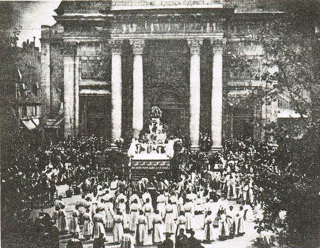 Keywords: Procéssion de la fête-Dieu à Besançon (1863).jpg en A christian ceremony in 1863 in Saint-Pierre church in Besançon Doubs France fr La procéssion de la fête-Dieu en 1863 à l'église Saint-Pierre place du huit septembre à Besançon Doubs France Réédition de Besançon disparu 1912 par Maxime Druhen - Jacques et Demontrond imprimerie 1987 Author 1863 PD-old Église Saint-Pierre Besançon Corpus Christi in France |