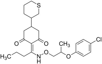 Keywords: Profoxydim 200.svg Structure of 2- 1- 2- 4-chlorophenoxy propoxy amino butylidene -5- tetrahydro-2H-thiopyran-3-yl cyclohexane-1 3-dione Own 2014-03-29 Emeldir <span class signature-talk >talk</span> PD-chem Profoxydim