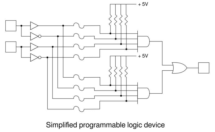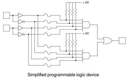 | Keywords: Programmable Logic Device.svg A simplified PAL device The programmable elements shown as a fuse connect both the true and complemented inputs to the AND gates These AND gates also known as product terms are ORed together to form a sum-of-products logic array Raster version drawn by Michael Holley in 1990 modified 2006 SVG created by dnet en wikipedia Transfer was stated to be made by User Neoprogram 2007-09-21 DnetSvg wikipedia en Created with Inkscape DnetSvg original upload log page en wikipedia Programmable_Logic_Device svg 2007-09-21 00 48 DnetSvg 729×449×0 22142 bytes <nowiki> Move to Commons Summary A simplified PAL device The programmable elements shown as a fuse connect both the true and complemented inputs to the AND gates These AND gates also known as product terms are ORed together to form a sum-of-product</nowiki> Programmable logic devices Scans by User Swtpc6800 |