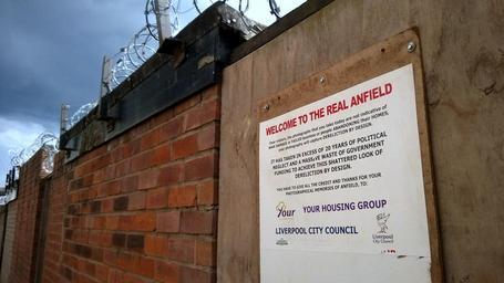 MAKE A MEME View Large Image Anfield around the stadium. Walking down a narrow road I happened across this sign, very professionally produced, pinned on to the back of a house. To save you pixel peeping, the bulk of the text reads: "Dear visitors, the ...