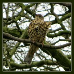 | Keywords: croaking project 365 project365 song thrush songthrush turdus philomelos turdusphilomelos wildlife outdoor bird animal photo border Not the best shot as it was taken with the compact on full zoom in the rain! It was almost as if this bird wanted to be photographed though. It flew onto the branch and sat there so patiently it seemed rude not to. I'm not so good at identifying our feathered friends, so I've sought advice from a friendly twitcher, though I've yet to hear back from Sanni. For now, I'm going to guess at a Song Thrush but I'm also open to a Mistle Thrush. Any further offers? Not the best shot as it was taken with the compact on full zoom in the rain! It was almost as if this bird wanted to be photographed though. It flew onto the branch and sat there so patiently it seemed rude not to. I'm not so good at identifying our feathered friends, so I've sought advice from a friendly twitcher, though I've yet to hear back from Sanni. For now, I'm going to guess at a Song Thrush but I'm also open to a Mistle Thrush. Any further offers? |