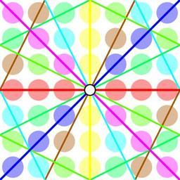 | Keywords: Projectivisation F7P^1.svg 6 color coordinates equation - <font color FFFF00> </font> 0 1 x 0 - <font color FF0000> </font> 1 0 y 0 - <font color 0000FF> </font> 1 1 y x - <font color FF00FF>\</font> 1 1 y x - <font color AA5500>/</font> 1 2 y 2x - <font color 00FFFF>\</font> 1 2 y 2x - <font color 00FF55>_ </font> 1 4 2y x - <font color 55FF00> _</font> 1 4 2y x finite field F<sub>7</sub> ru П оективная п ямая F<sub>7</sub>P<sup>1</sup> над конечным полем F<sub>7</sub> fr La droite projective F<sub>7</sub>P<sup>1</sup> sur un corps fini F<sub>7</sub> Own Incnis Mrsi 2009-07-27 public domain see projective line over a finite field Example of using in design <nowiki> Projectivisation F5P 1 svg 200px </nowiki> - Projectivisation F5P 1 svg 200px Finite fields Geometric patterns |