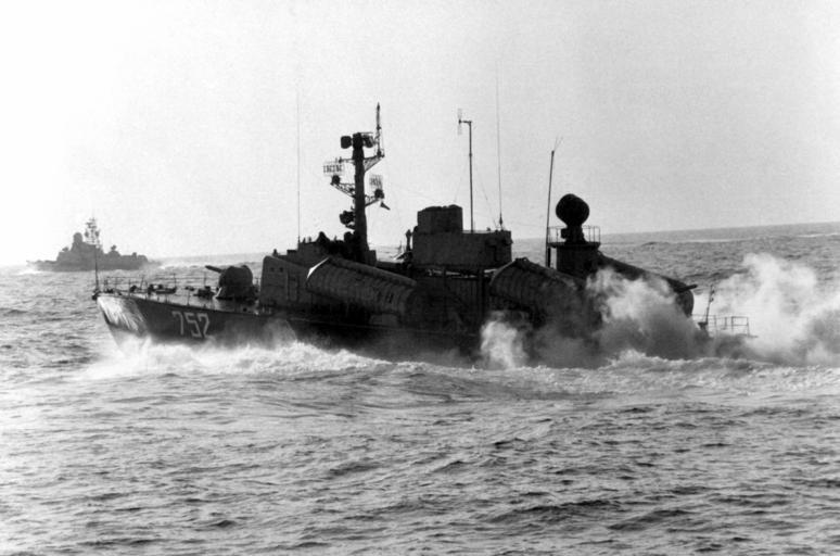 Keywords: Projects 205-U and 1234-E missile ships - May 1982.jpg en A port beam view of a Soviet project 205-U Osa II missle boat armed with new communications complex and anti-ship missiles complex P-15mod underway In the background is a Soviet project 1234-E Nanuchka II small missile ship ru РКА п оекта 205-У в пе иод п оведения испытаний новейшого комплекса связи и ПКРК П-15мод а заднем плане РК п оекта 1234-Э http //www defenseimagery mil/assetDetails action guid 56066a6afcfeb2f01e69659d57184aef903fb718 en DefenseImagery mil for DN-SN-82-05721 en Photographer's Name Unknown 1982-05 PD-USGov-Military-Navy Uragan class small missle ship Project 205-U missile boats |
