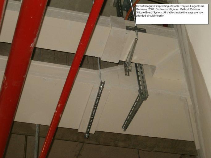 | Keywords: Promat signum tray cladding 2.jpg Circuit Integrity Fireproofing of Cable trays in Lingen/Ems Germany using Calcium silicate board system qualified to DIN 4102 Contractor Signum Bissendorf Germany Own 2007-02-17 Achim Hering Fire Fireproofing DIN 4102 Calcium silicate Circuit integrity Passive fire protection boards |