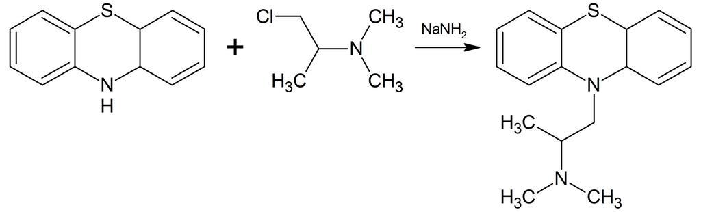 Keywords: Promethazine syntesis.jpg Promethazine synthesis svg en Syntesis of promethazine by alkylation of phenothiazine ru Получение п ометазина алкили ованием фенотиазина own Дядя Ф ед Drug syntheses Promethazine