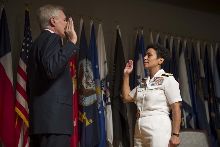 | Keywords: Promotion ceremony 140701-N-WL435-235.jpg en Secretary of the Navy Ray Mabus gives Vice Adm Michelle Howard the oath of office before promoting her to the rank of admiral at the Women in Military Service for America Memorial Howard is the first woman to be promoted to the rank of admiral in the history of the Navy and will assume the duties and responsibilities as the 38th Vice Chief of Naval Operations from Adm Mark Ferguson U S Navy photo by Chief Mass Communication Specialist Peter D Lawlor/Released 2014-07-01 Petty Officer 1st Class Peter Lawlor https //www dvidshub net/image/1430986 140701-N-WL435-235 2014-07-01 22 52 WASHINGTON DC US PD-USGov-Military-Navy Mark E Ferguson III Ray Mabus Images from DoD uploaded by Fæ |