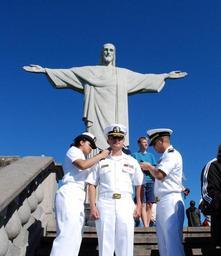 | Keywords: Promotion ceremony at Christ the Redeemer statue 140808-N-TN557-175.jpg en Lt j g Juan C Benavides center assigned to the future amphibious assault ship USS America LHA 6 is promoted from Ensign to Lt j g in front of the Christ the Redeemer statue during a scheduled port visit America is currently traveling through the U S Southern Command and U S 4th Fleet area of responsibility on her maiden transit America visits the Americas America is the first ship of its class replacing the Tarawa-class of amphibious assault ships As the next generation big-deck amphibious assault ship America is optimized for aviation capable of supporting current and future aircraft such as the MV-22 Osprey and F-35B Joint Strike Fighter The ship is scheduled to be ceremoniously commissioned Oct 11 in San Francisco U S Navy photo by Lt Dawn Stankus/Released 2014-08-08 Lt Dawn Stankus https //www dvidshub net/image/1496085 140808-N-TN557-175 2014-08-11 11 56 RIO DE JANEIRO BR PD-USGov-Military-Navy MV-22B Osprey Crew of USS America LHA-6 Images from DoD uploaded by Fæ |