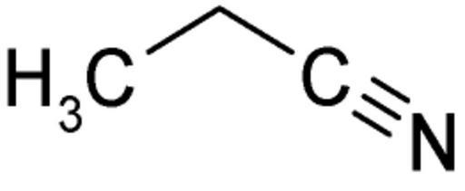 Keywords: Propionitrile.png Chemical structure of propionitrile own work drawn with MDL ISIS/Draw<sup>®</sup> 2007-06-19 Dschanz public domain 100px<br><br>100px Propionitrile