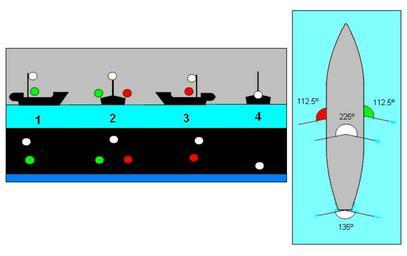 Keywords: Propmec50.PNG Navigational lights for mecanical powered vessel length less 50 meters Own 2007-01-01 Claudio Elias GFDL Navigational lights